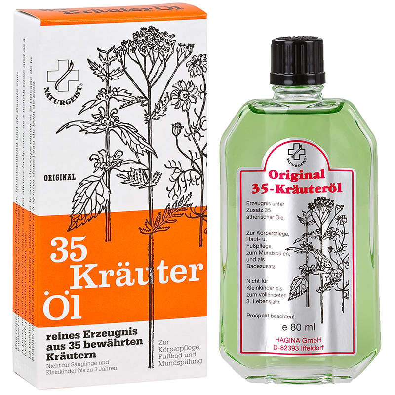 Ulje od 35 ljekovitih biljaka, jedinstveni proizvod široke primjene, pojednostavljuje njegu kože lica i tijela. Možete ga koristiti i za njegu stopala, za utrljavanje na bolna i ozljeđena mjesta, ispiranje usta, masiranje, inhaliranje i kao dodatak za kupanje. Osvježavajuće je i opuštajuće. Vrlo pogodno za parne kupke lica za čišćenje kože.